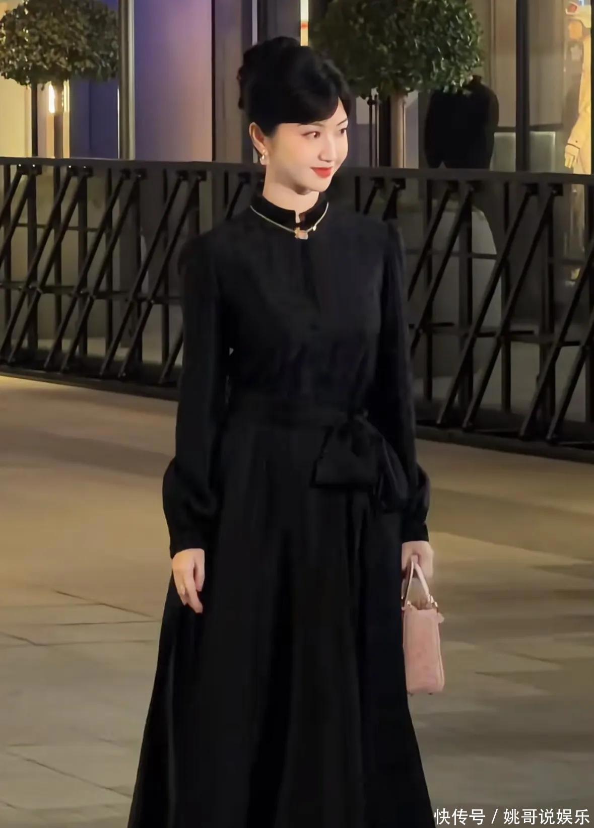好久没见到景甜的身影,她穿着一套黑色礼服,显得特别有那种古典美人的气质。