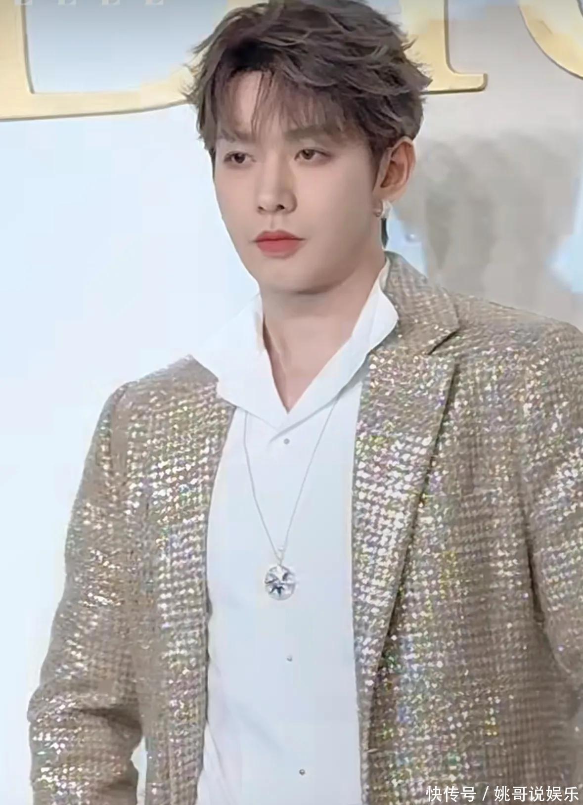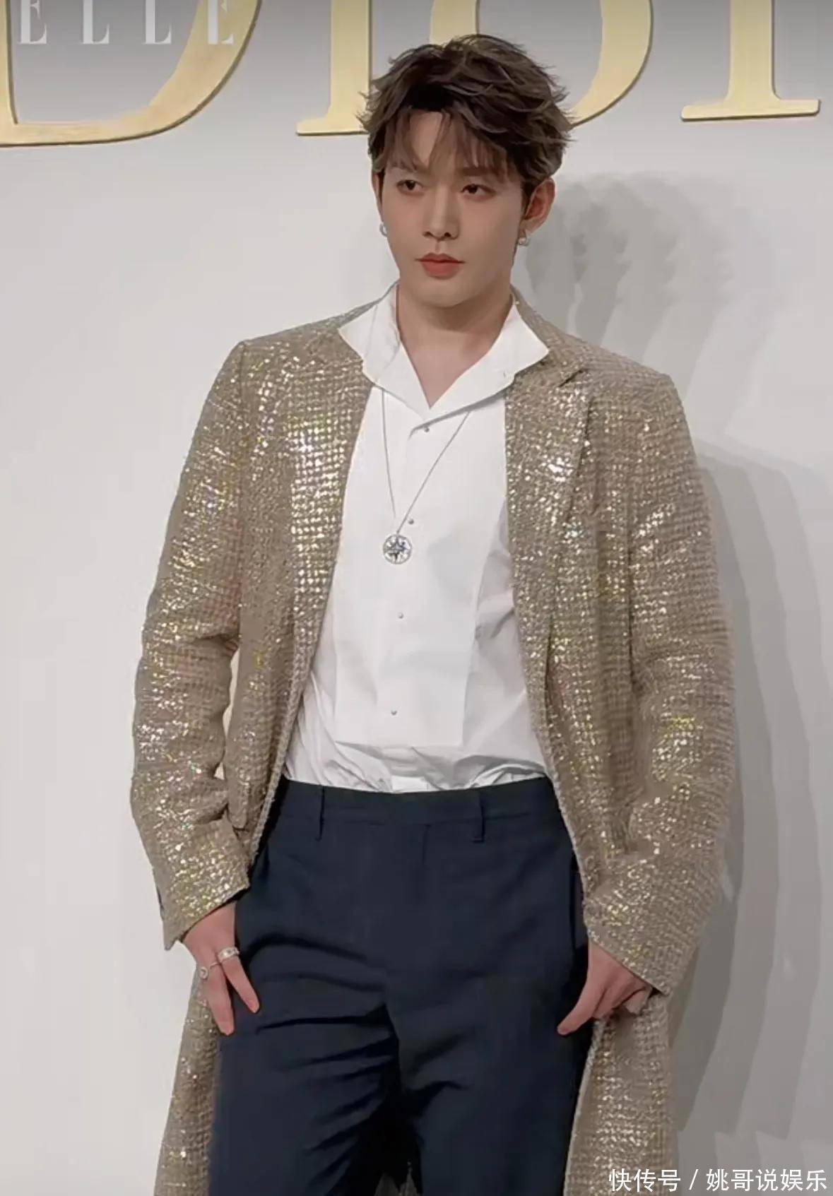 邓为呢,他最近也成了品牌们偏爱的流量小生了,身上穿着一件金色西装外套,显得特别细致精致。