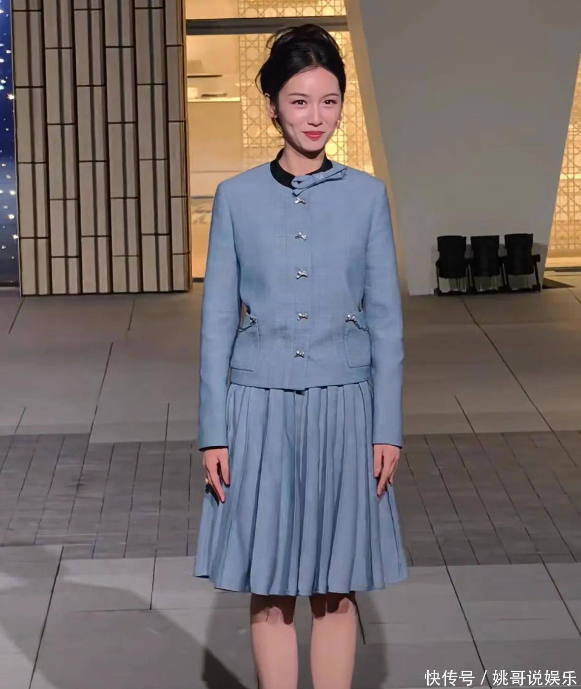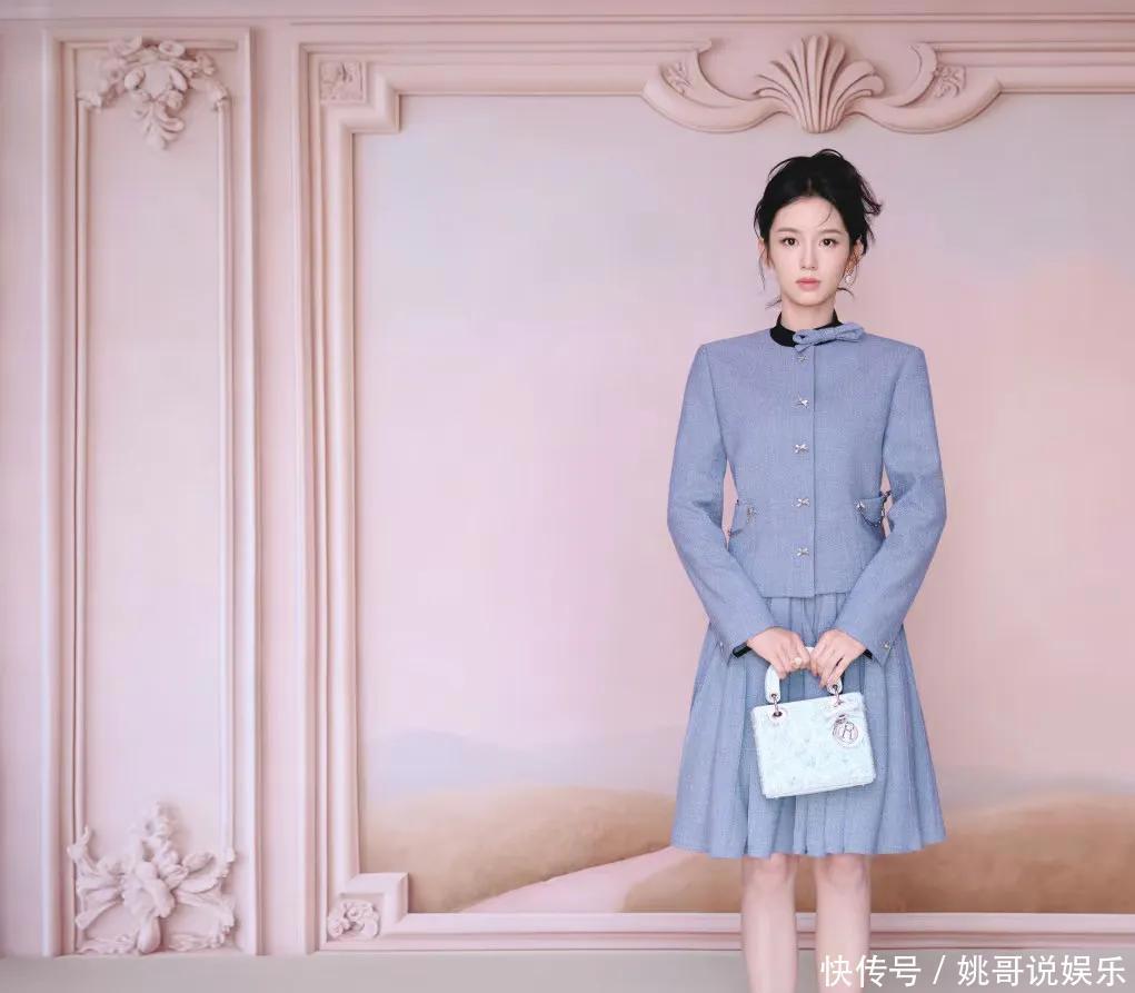 周也呢,她可是品牌方特别喜欢的那位95后小花,频频亮相巴黎时装周。这次身穿一套蓝色套装,整个人看起来格外清新淡雅。